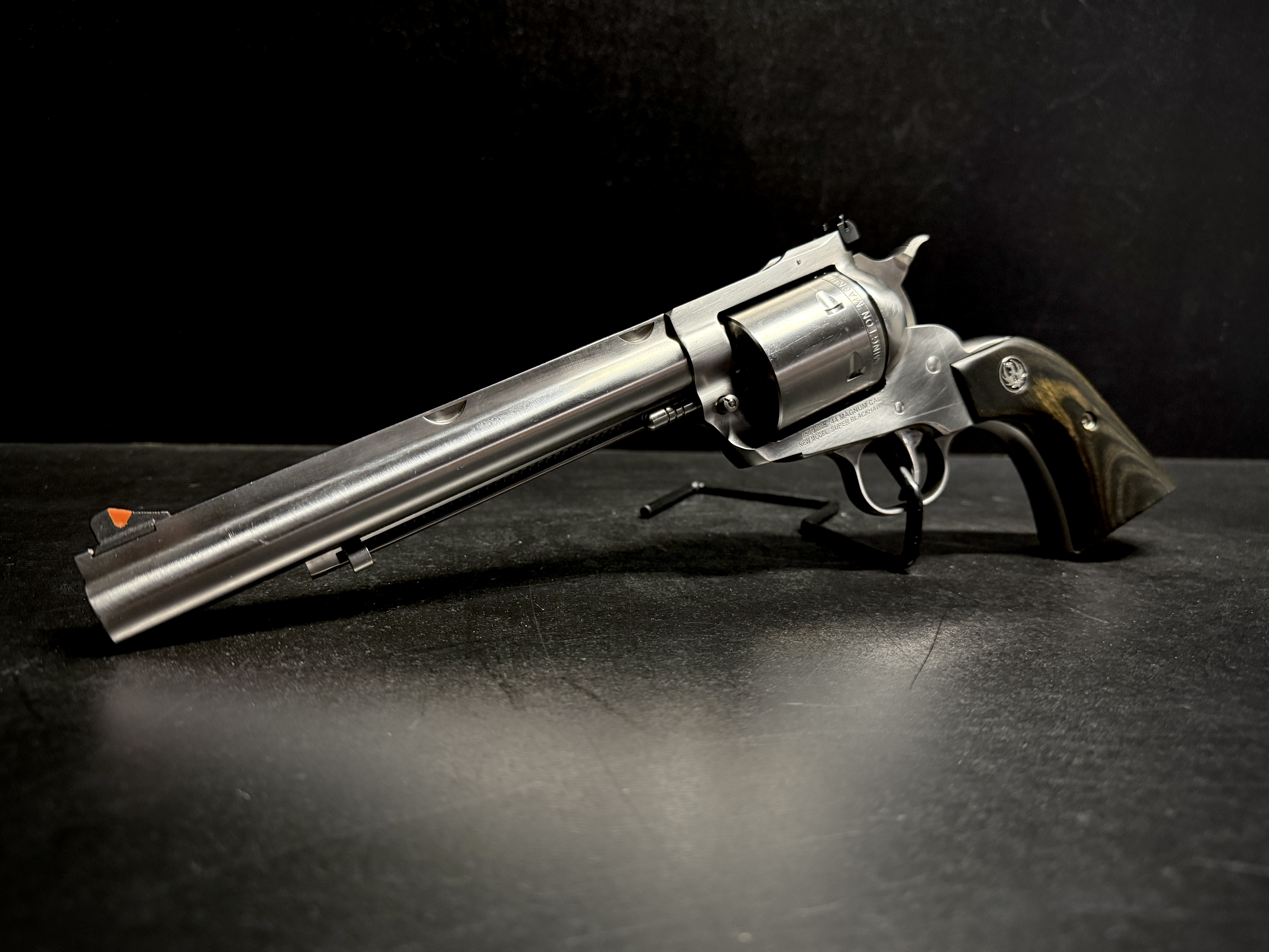 - Ruger, Super Blackhawk Hunter, Single Action Only, Revolver, 44 Magnum, 7.5" Barrel, Stainless Steel, Satin Finish, Silver, Black Laminate Grips, Adjustable Rear & Ramp Front Sight, 6 Rounds*GripsBlack Laminate